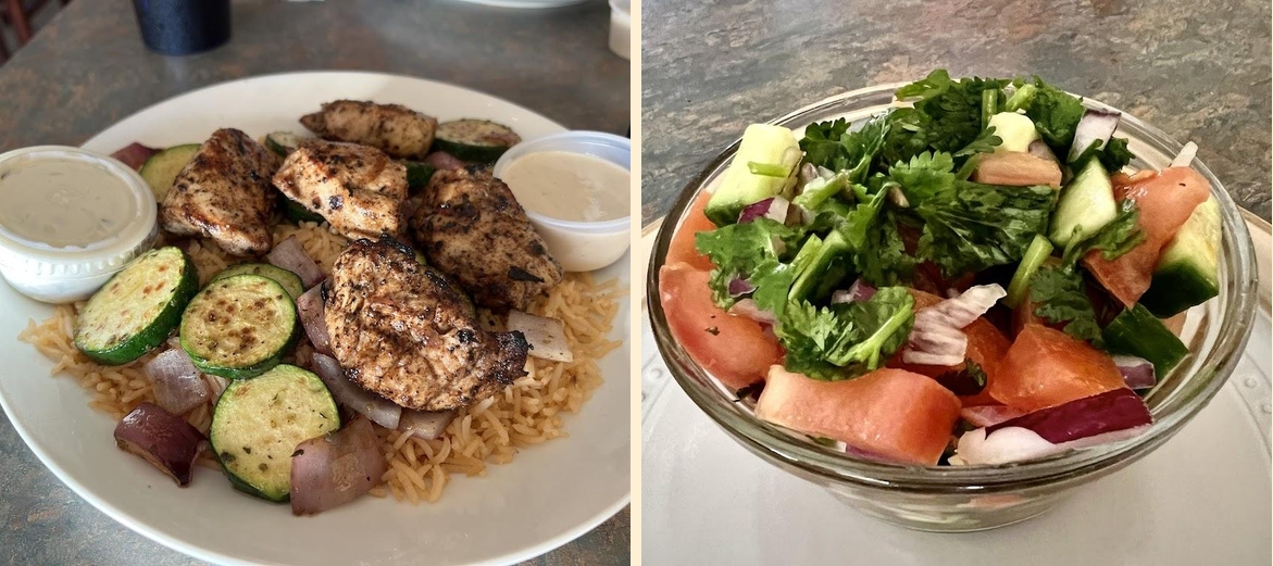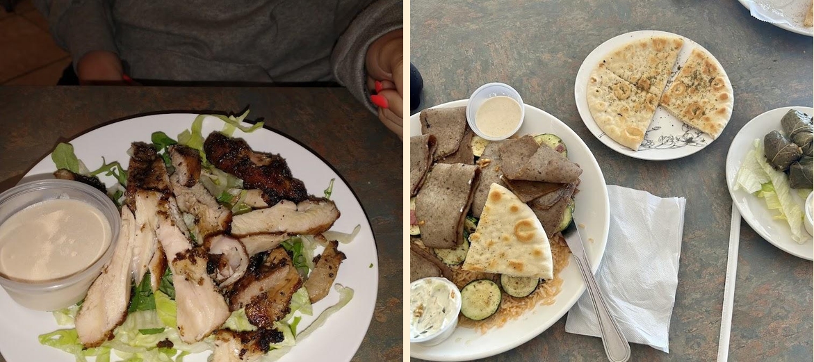 Popular choices include the gyros, falafel wraps, and chicken shawarma. Each dish showcases vibrant flavors and fresh ingredients.